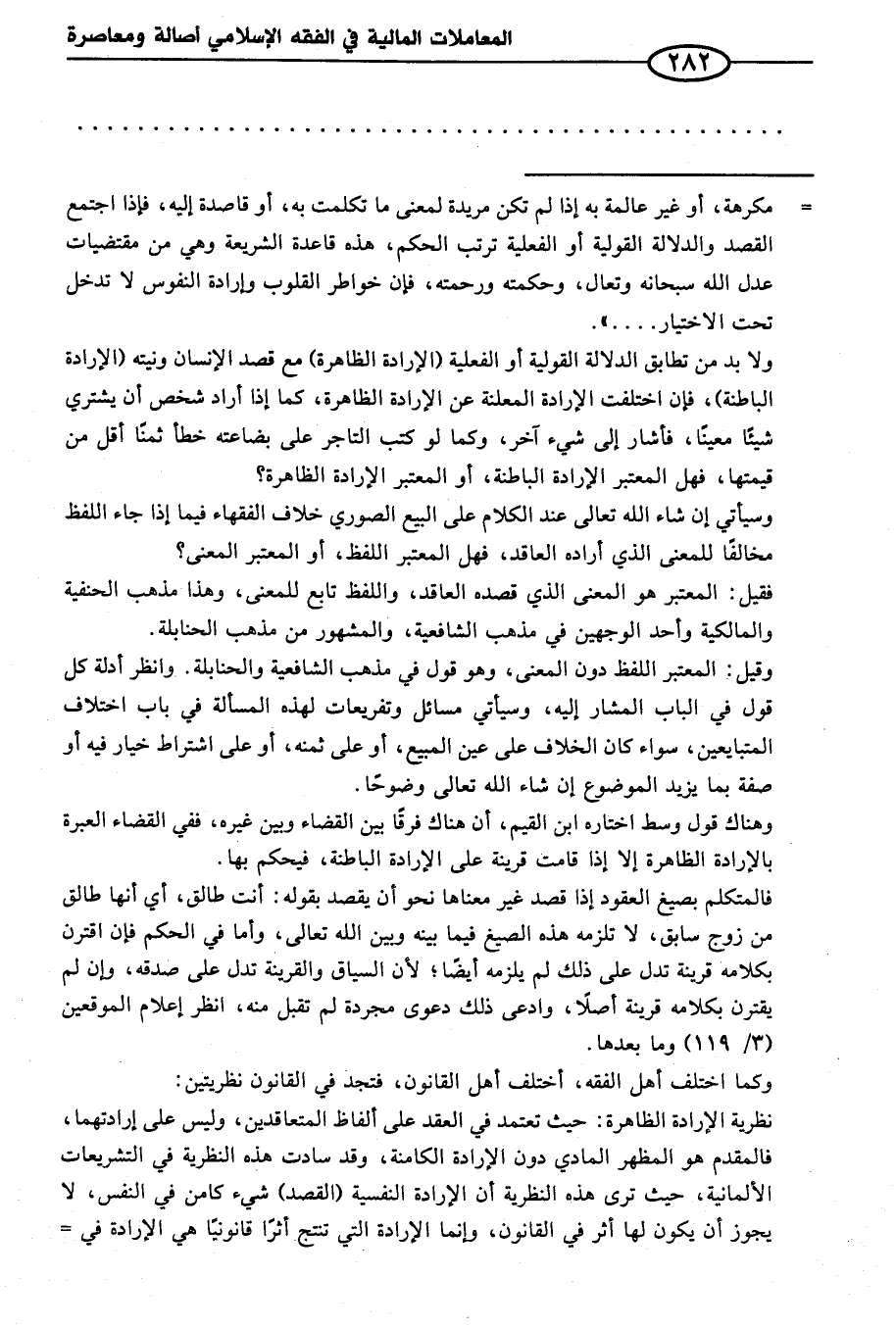ولا بد من تطابق الدلالة القولية أو الفعلية (الإرادة الظاهرة) مع قصد الإنسان ونيته (الإرادة الباطنة)، فإن اختلفت الإرادة المعلنة عن الإرادة الظاهرة، كما إذا أراد شخص أن يشتري شيئاً معينا، فأشار إلى شيء آخر، وكما لو كتب التاجر على بضاعته خطأ ثمنا أقل من قيمتها، فهل المعتبر الإرادة الباطنة، أو المعتبر الإرادة الظاهرة؟