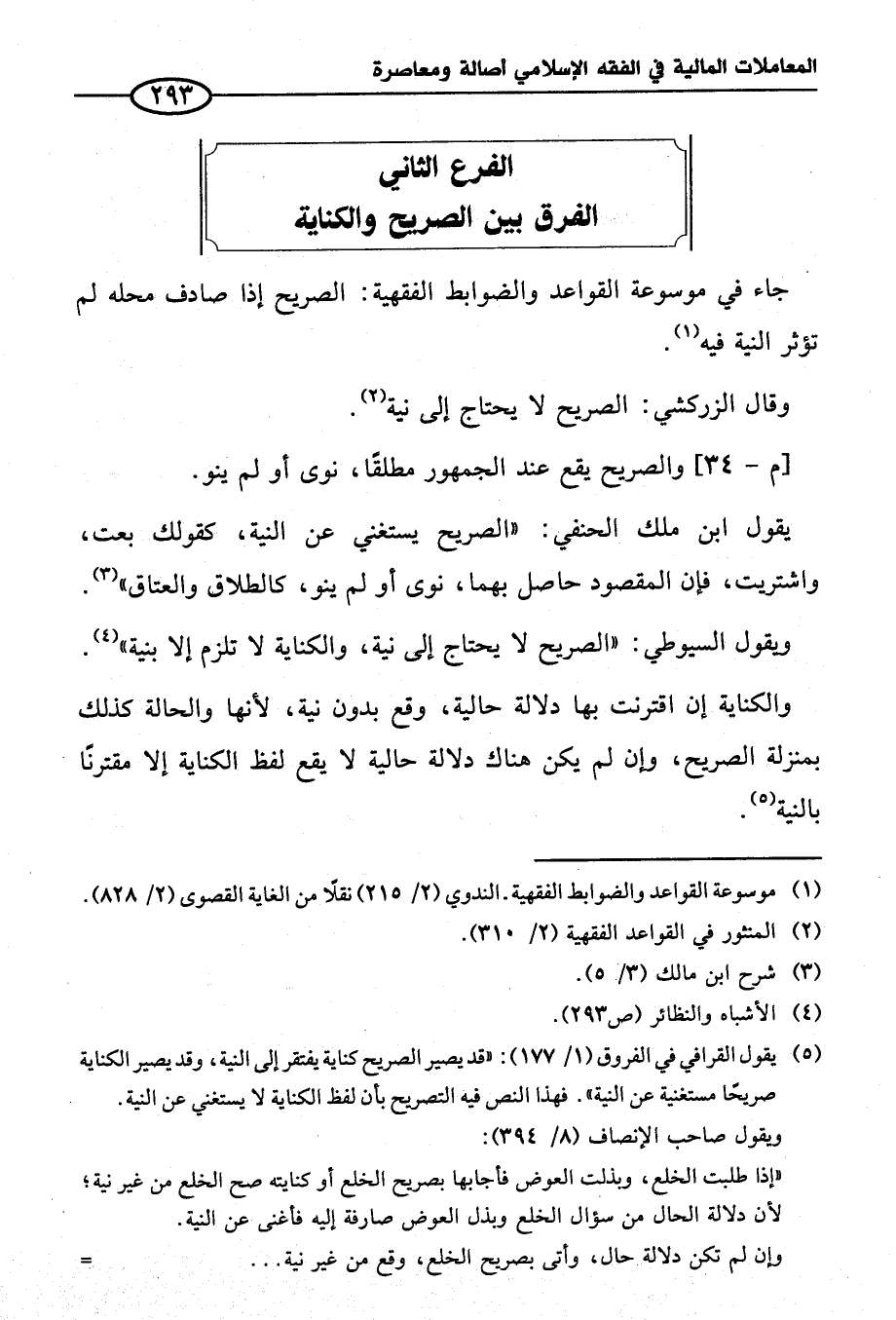 (¬٥) يقول القوافي في الفروق (١/ ١٧٧): "قد يصير الصريح كناية يفتقر إلى النية، وقد يصير الكناية صريحا مستغنية عن النية". فهذا النص فيه التصريح بأن لفظ الكناية لا يستغني عن النية.