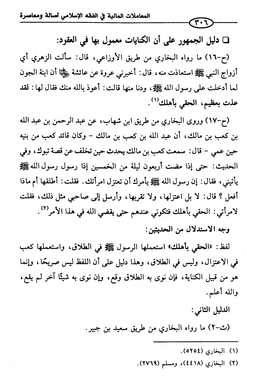 (ح-١٧) وروى البخاري من طريق ابن شهاب، عن عبد الرحمن بن عبد الله بن كعب بن مالك، أن عبد الله بن كعب بن مالك -وكان قائد كعب من بنيه حين عمي- قال: سمعت كعب بن مالك يحدث حين تخلف عن قصة تبوك، وفي الحديث: حتى إذا مضت أربعون ليلة من الخمسين إذا رسول رسول الله - صلى الله عليه وسلم - يأتيني، فقال: إن رسول الله - صلى الله عليه وسلم - يأمرك أن تعتزل امرأتك. فقلت: أطلقها أم ماذا أفعل؟ قال: لا بل اعتزلها, ولا تقربها، وأرسل إلى صاحبي مثل ذلك، فقلت لامرأتي: الحقي بأهلك فتكوني عندهم حتى يقضي الله في هذا الأمر (¬٢).