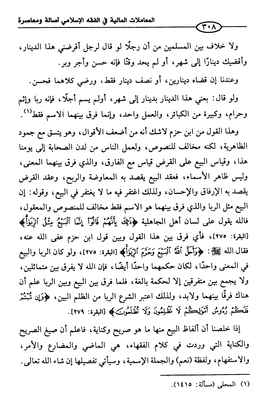 وهذا القول من ابن حزم لا شك أنه من أضعف الأقوال، وهو يتسق مع جمود الظاهرية، لكنه مخالف للنصوص، ولعمل الناس من لدن الصحابة إلى يومنا هذا، وقياس البيع على القرض قياس مع الفارق، والذي فرق بينهما المعنى، وليس ظاهر الأسماء، فعقد البيع يقصد به المعاوضة والربح، وعقد القرض يقصد به الإرفاق والإحسان، ولذلك اغتفر فيه ما لا يغتفر في البيع، وقوله: إن البيع مثل الربا والذي فرق بينهما هو الاسم فقط مخالف للمنصوص والمعقول، فالله يقول على لسان أهل الجاهلية {ذَلِكَ بِأَنَّهُمْ قَالُوا إِنَّمَا الْبَيْعُ مِثْلُ الرِّبَا} [البقرة: ٢٧٥]، فأي فرق بين هذا القول وبين قول ابن حزم عفى الله عنه، فقال الله - صلى الله عليه وسلم -: {وَأَحَلَّ اللَّهُ الْبَيْعَ وَحَرَّمَ الرِّبَا} [البقرة: ٢٧٥]، ولو كان الربا والبيع في المعنى واحداً، لكان حكمهما واحداً أيضًا، فإن الله لا يفرق بين متماثلين، ولا يجمع بين متفرقين إلا لحكمة بالغة، فلما فرق بين البيع وبين الربا علم أن هناك فرقا بينهما ولابد، ولذلك اعتبر الشرع الربا من الظلم البين، {وَإِنْ تُبْتُمْ فَلَكُمْ رُءُوسُ أَمْوَالِكُمْ لَا تَظْلِمُونَ وَلَا تُظْلَمُونَ} [البقرة: ٢٧٩].