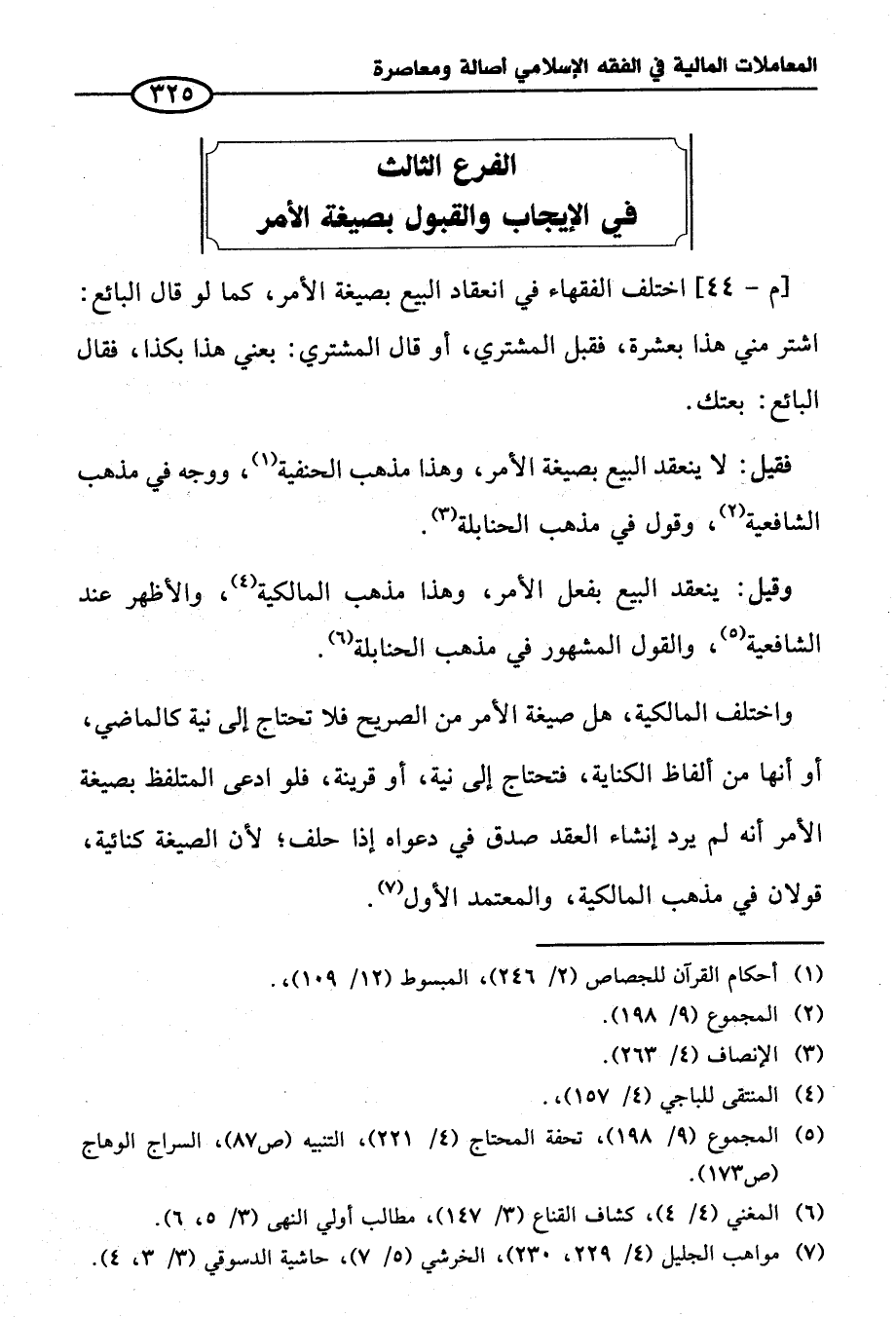 الفرع الثالث في الإيجاب والقبول بصيغة الأمر
