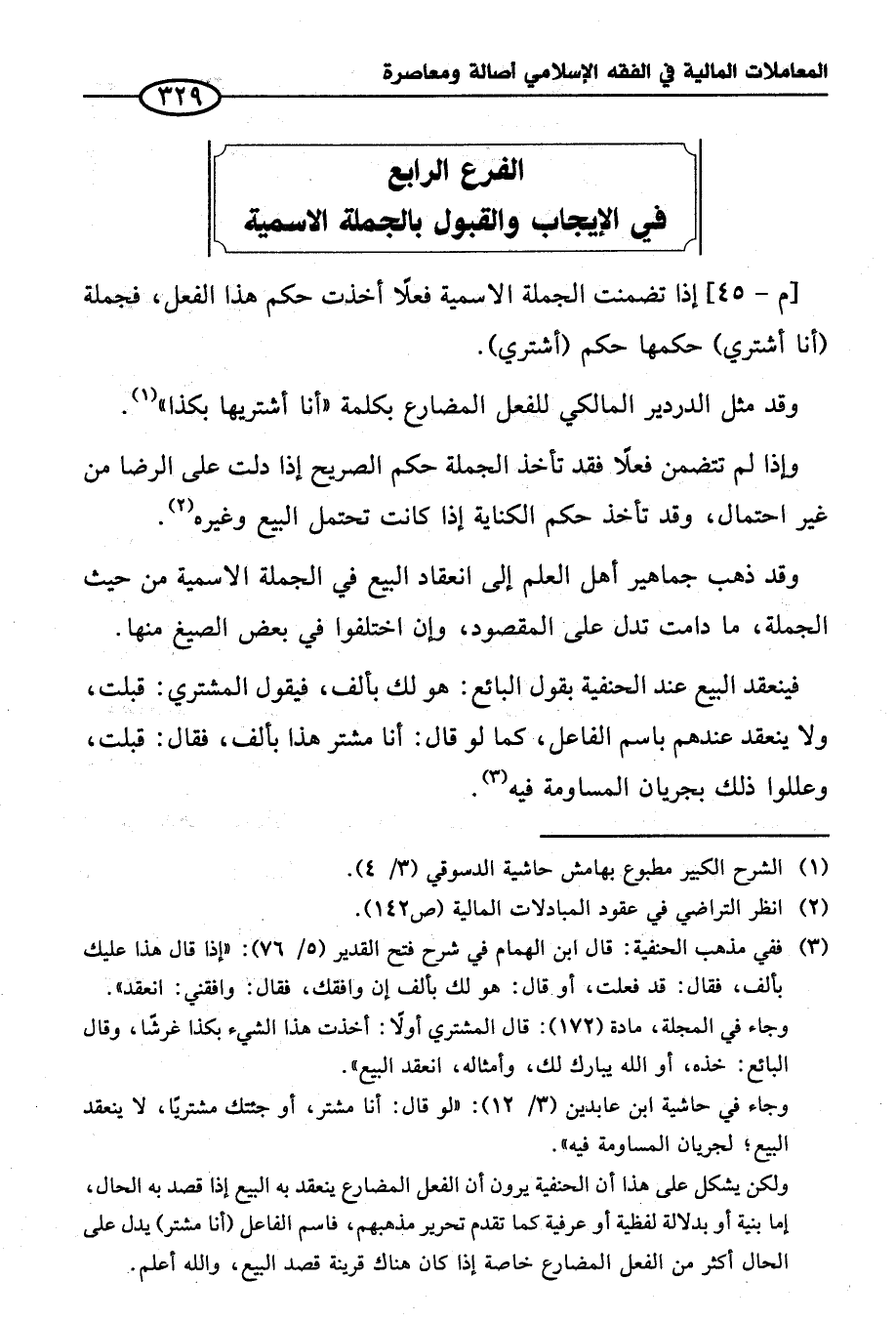 الفرع الرابع في الإيجاب والقبول بالجملة الاسمية