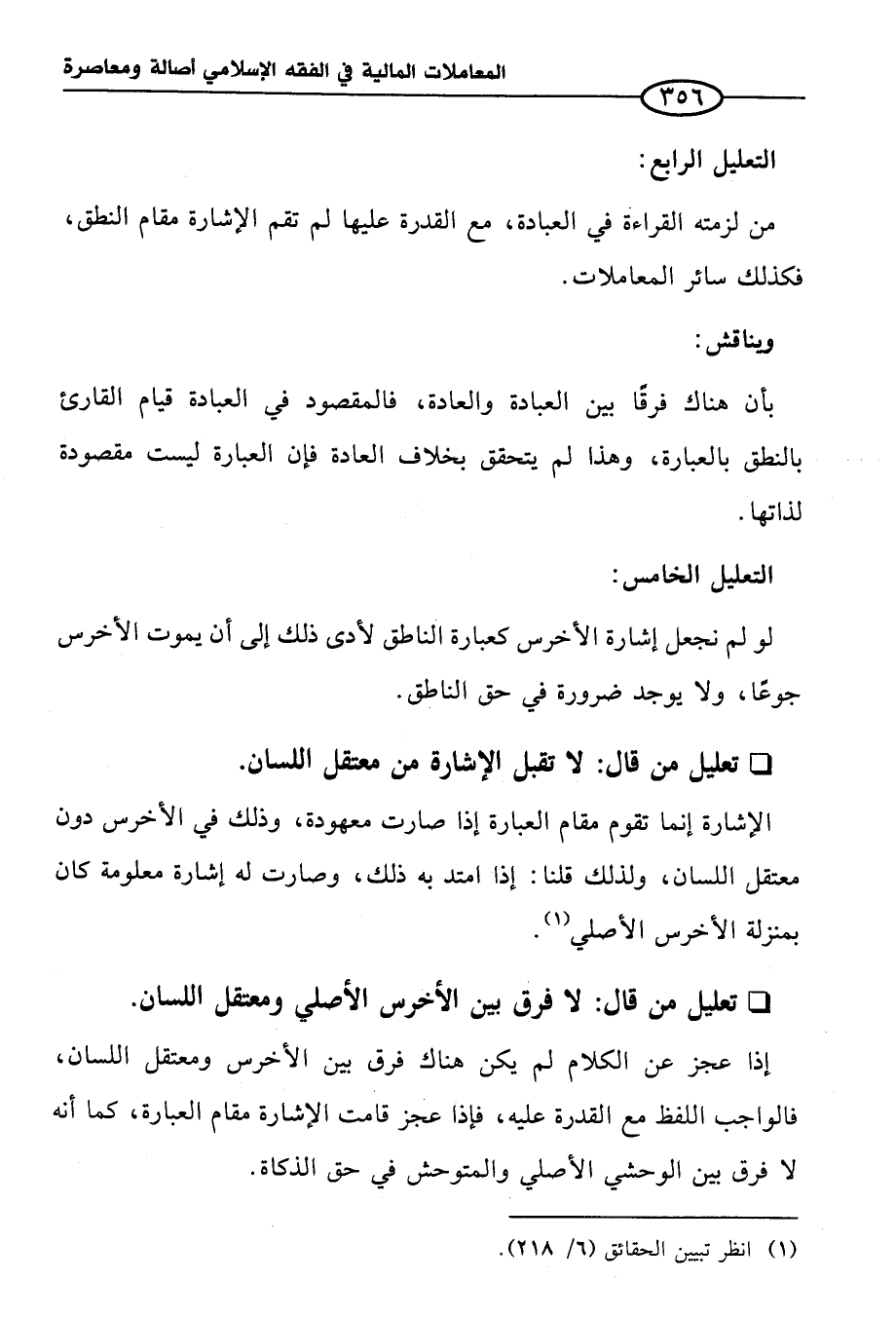 من لزمته القراءة في العبادة، مع القدرة عليها لم تقم الإشارة مقام النطق، فكذلك سائر المعاملات.