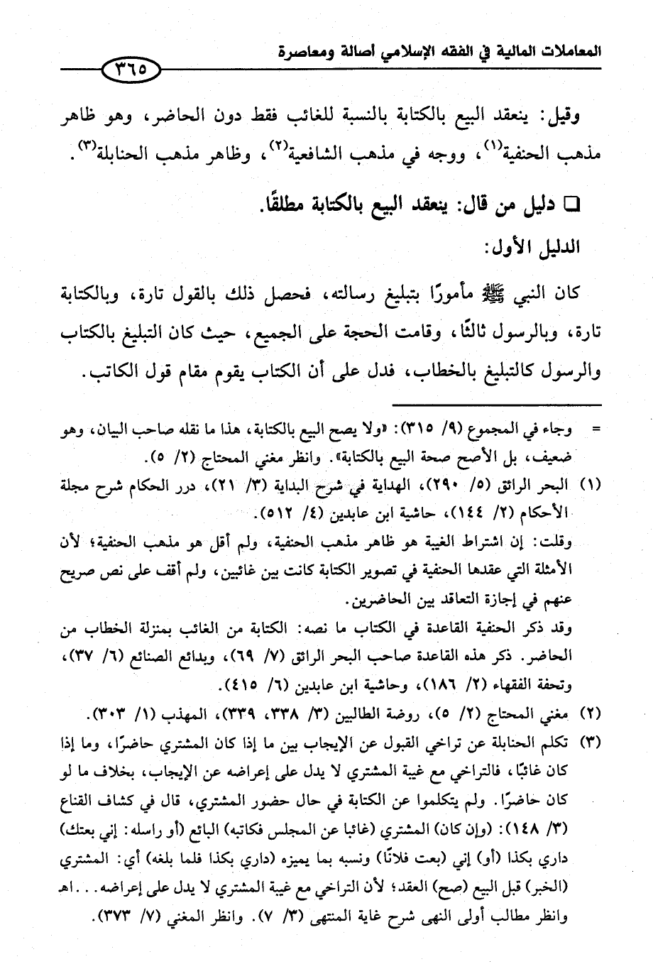 = وجاء في المجموع (٩/ ٣١٥): "ولا يصح البيع بالكتابة، هذا ما نقله صاحب البيان، وهو ضعيف، بل الأصح صحة البيع بالكتابة". وانظر مغني المحتاج (٢/ ٥).