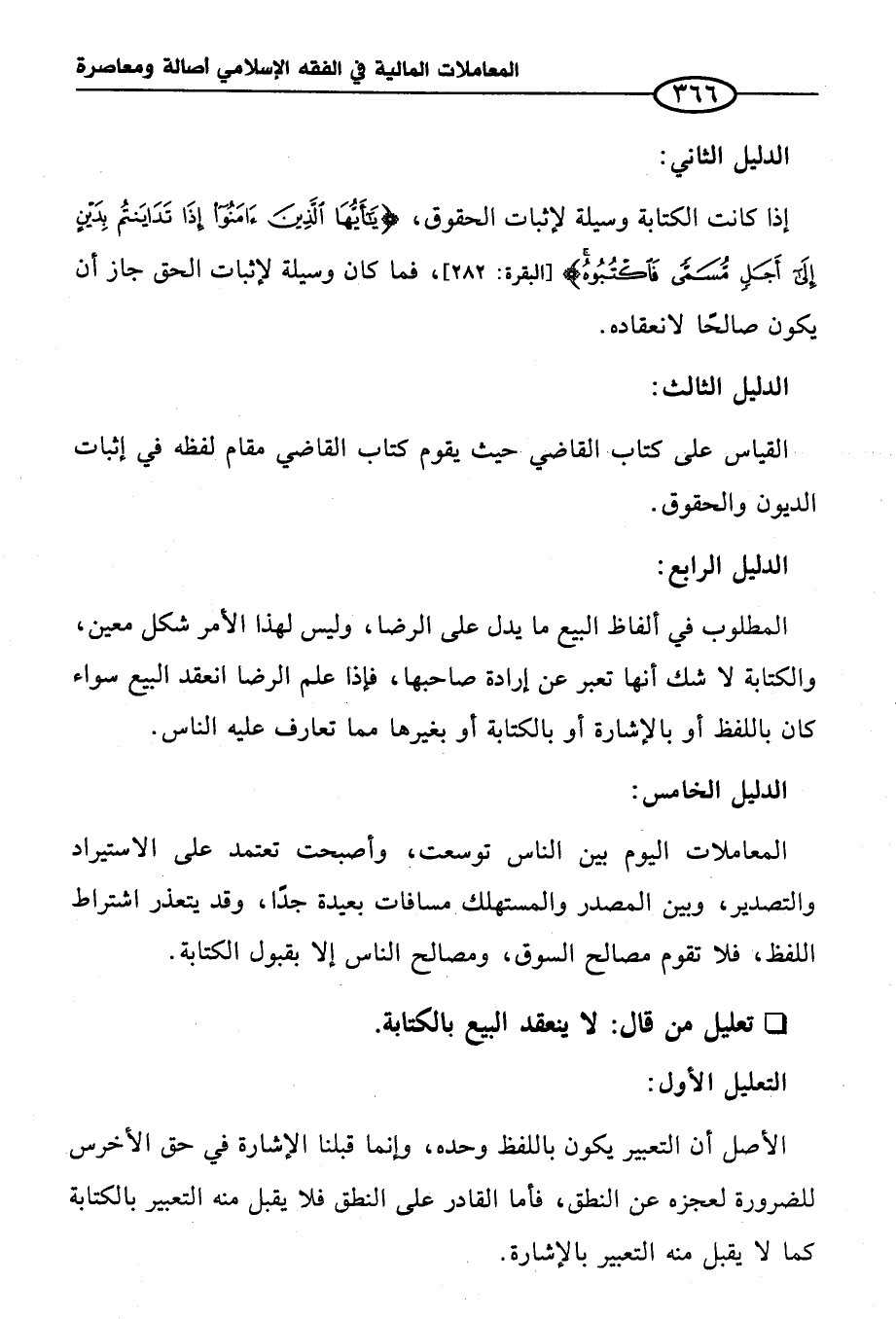 المعاملات اليوم بين الناس توسعت، وأصبحت تعتمد على الاستيراد والتصدير، وبين المصدر والمستهلك مسافات بعيدة جداً، وقد يتعذر اشتراط اللفظ، فلا تقوم مصالح السوق، ومصالح الناس إلا بقبول الكتابة.