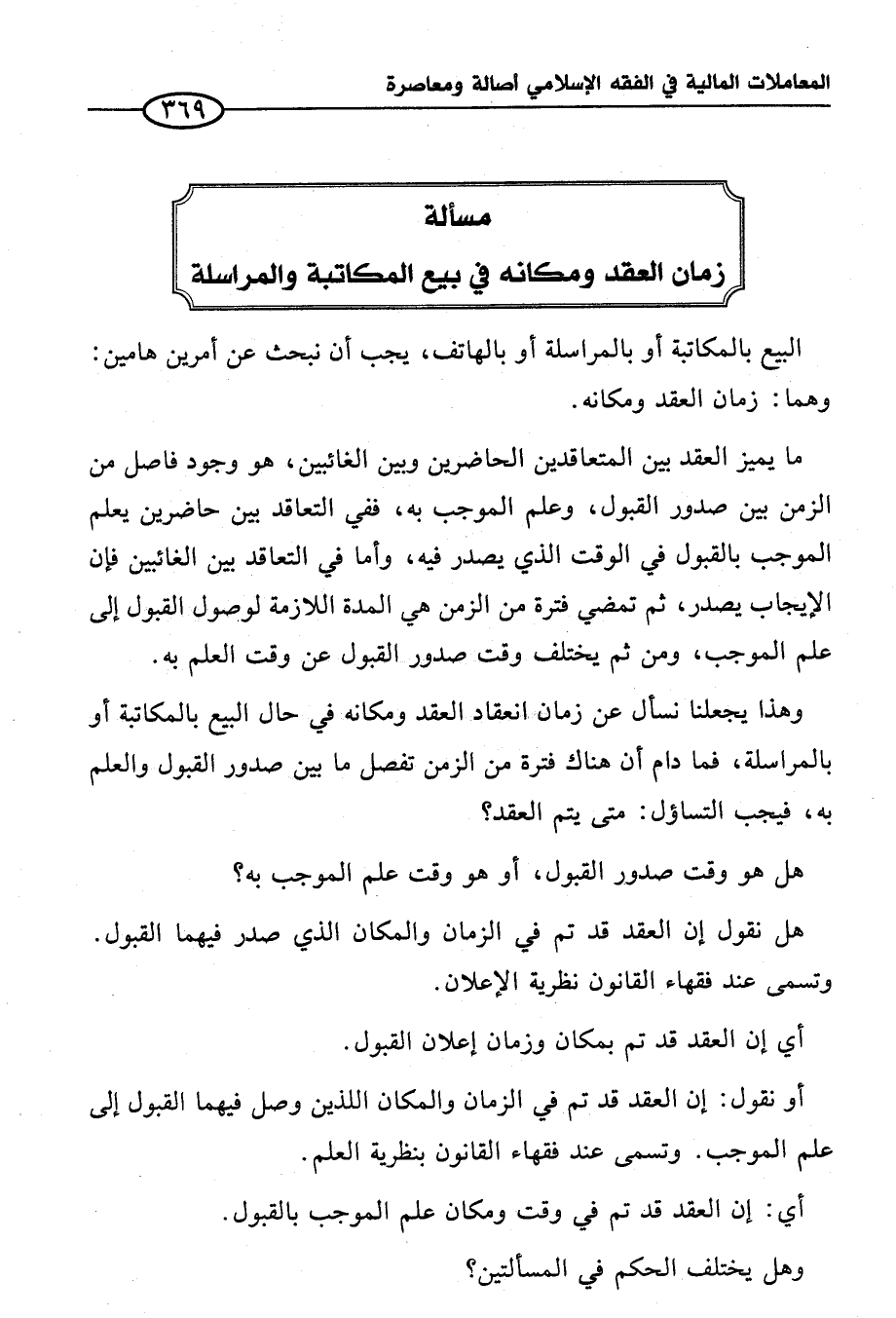 مسألة زمان العقد ومكانه في بيع المكاتبة والمراسلة