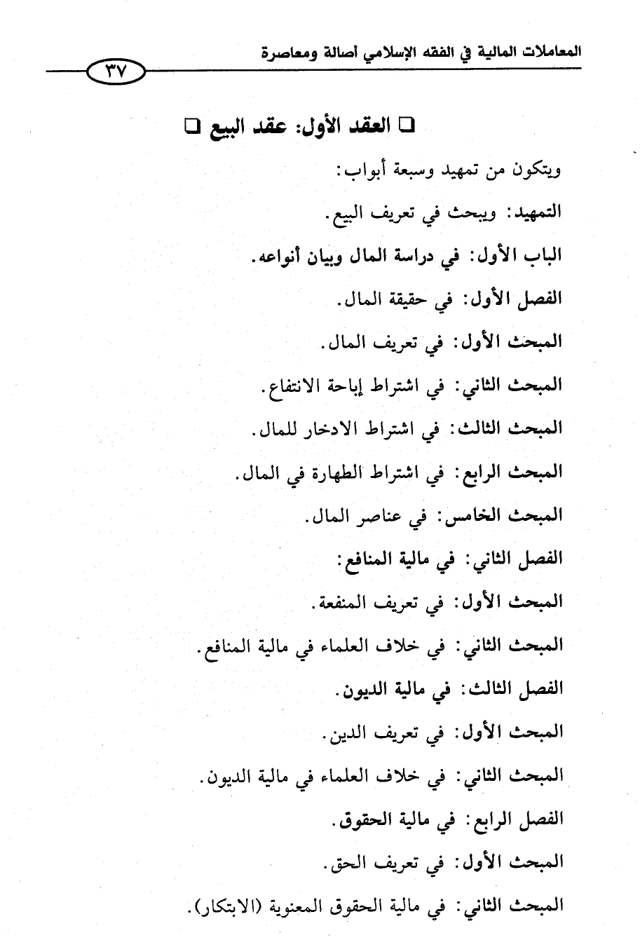 الباب الأول: في دراسة المال وبيان أنواعه.