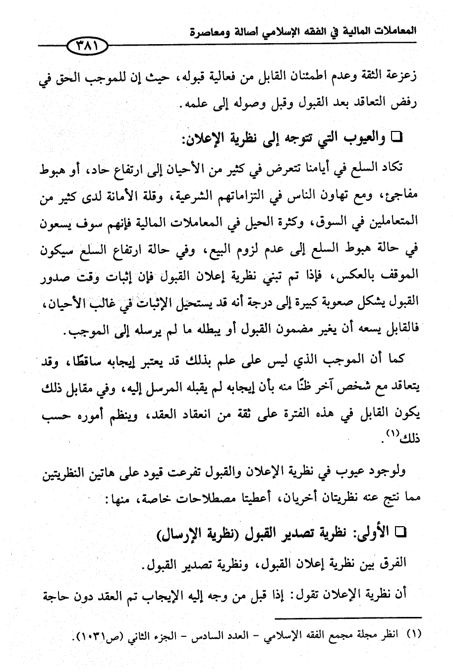 (¬١) انظر مجلة مجمع الفقه الإسلامي - العدد السادس - الجزء الثاني (ص ١٠٣١).