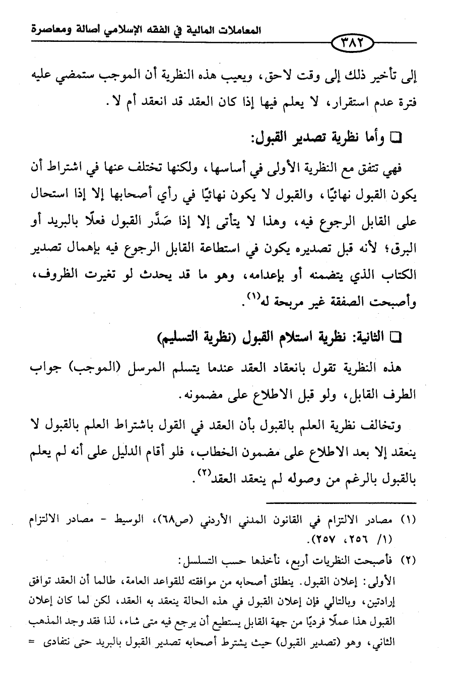 (¬١) مصادر الالتزام في القانون المدني الأردني (ص ٦٨)، الوسيط - مصادر الالتزام (١/ ٢٥٦, ٢٥٧).