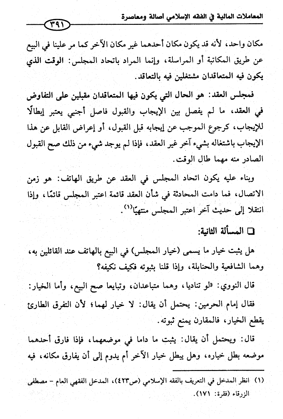 (¬١) انظر المدخل في التعريف بالفقه الإِسلامي (ص ٤٢٣)، المدخل الفقهي العام - مصطفى الزرقاء (فقرة: ١٧١).