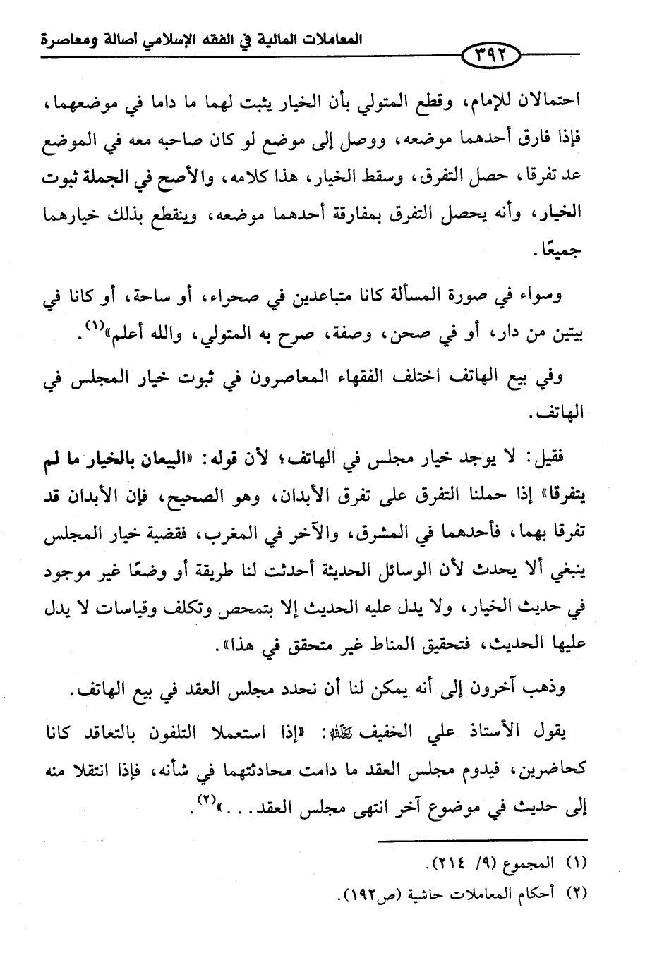 (¬٢) أحكام المعاملات حاشية (ص ١٩٢).