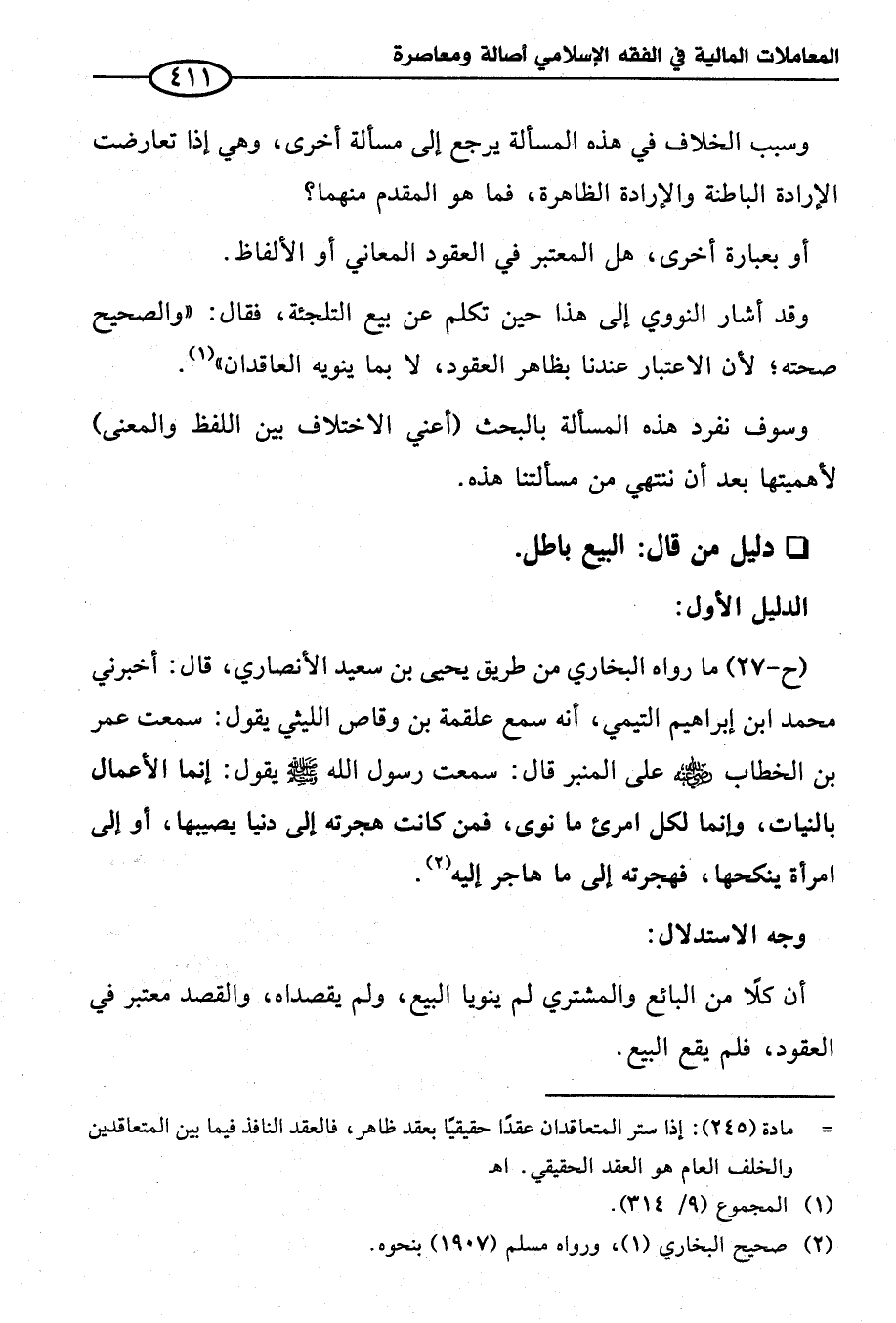 وقد أشار النووي إلى هذا حين تكلم عن بيع التلجئة، فقال: "والصحيح صحته؛ لأن الاعتبار عندنا بظاهر العقود، لا بما ينويه العاقدان" (¬١).