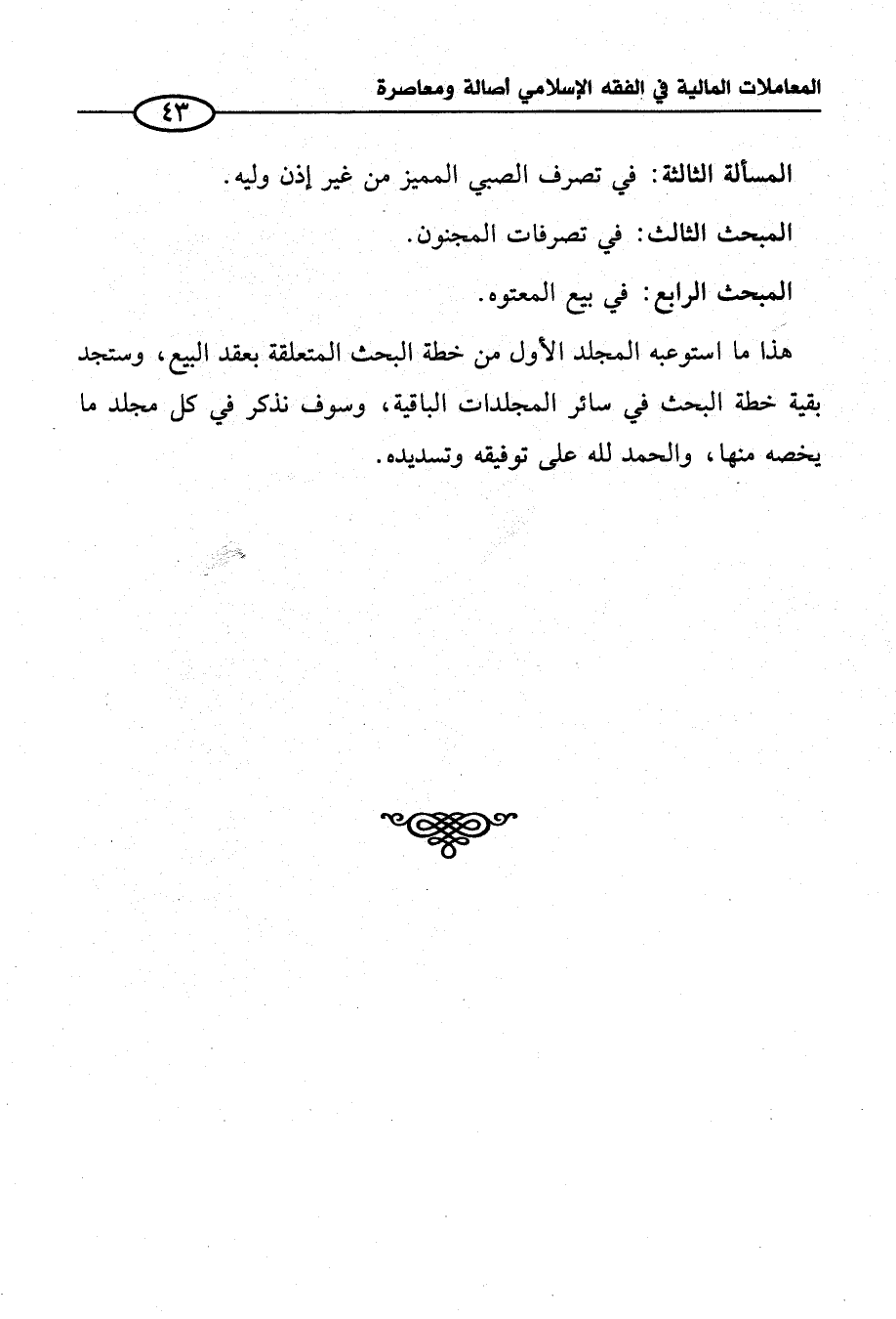 هذا ما استوعبه المجلد الأول من خطة البحث المتعلقة بعقد البيع، وستجد بقية خطة البحث في سائر المجلدات الباقية، وسوف نذكر في كل مجلد ما يخصه منها، والحمد لله على توفيقه وتسديده.