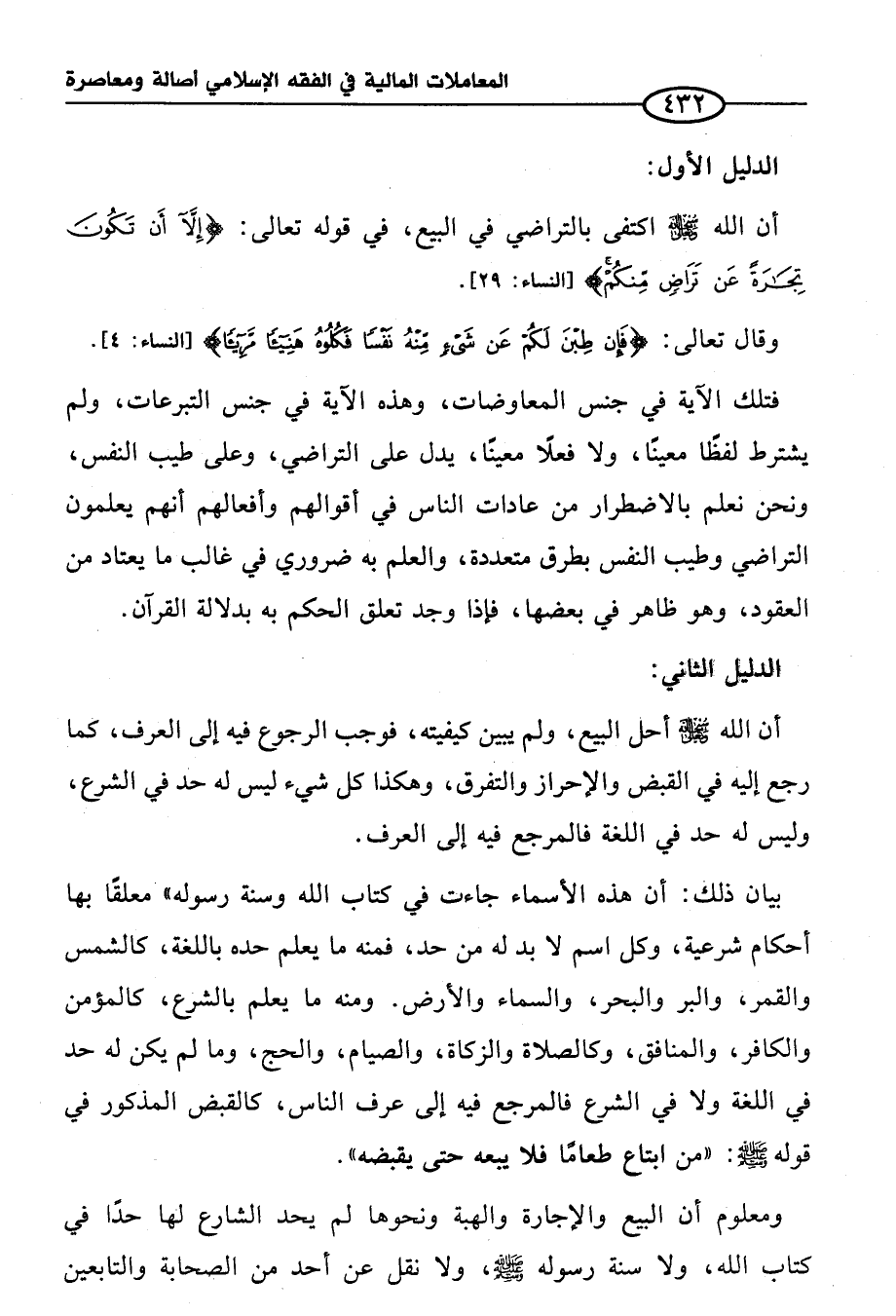 أن الله سبحانه وتعالى اكتفى بالتراضي في البيع، في قوله تعالى: {إِلَّا أَنْ تَكُونَ تِجَارَةً عَنْ تَرَاضٍ مِنْكُمْ} [النساء: ١٢٩].