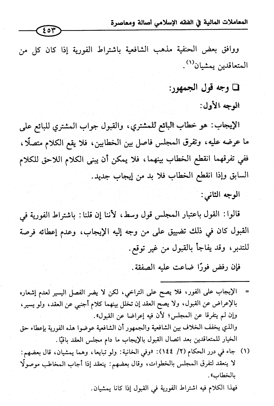 (¬١) جاء في درر الحكام (٢/ ١٤٤): "وفي الخانية: ولو تبايعا، وهما يمشيان، قال بعضهم: لا ينعقد لتفرق المجلس بالخطوات، وقال بعضهم: ينعقد إذا أجاب المخاطب موصولًا بالخطاب".