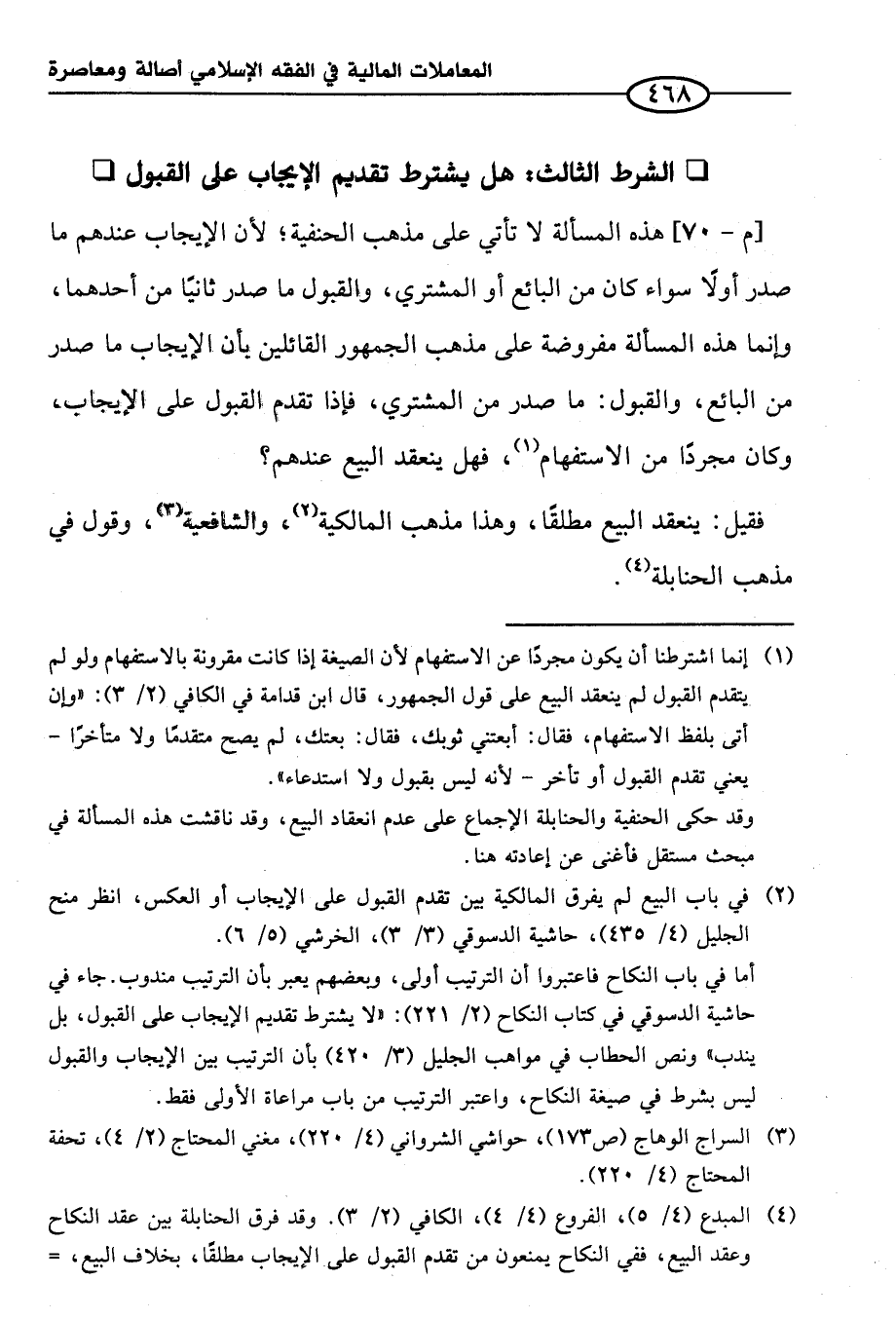 (¬٢) في باب البيع لم يفرق المالكية بين تقدم القبول على الإيجاب أو العكس، انظر منح الجليل (٤/ ٤٣٥)، حاشية الدسوقي (٣/ ٣)، الخرشي (٥/ ٦).