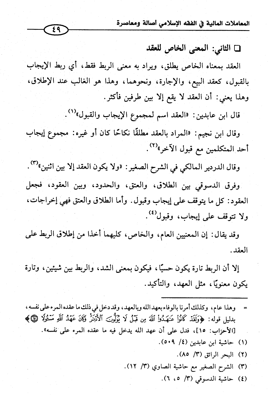 * الثاني: المعنى الخاص للعقد