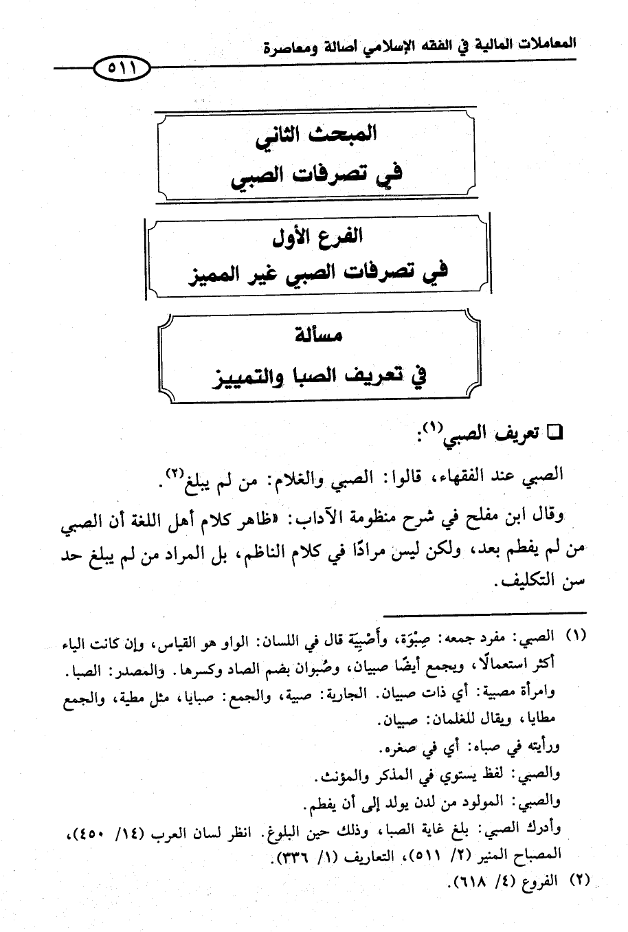 المبحث الثاني في تصرفات الصبي