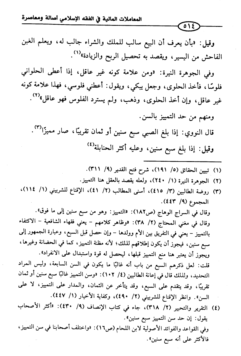 وقال في السراج الوهاج (ص ١٨٢): "التمييز: وهو من سبع سنين إلى ما فوق".