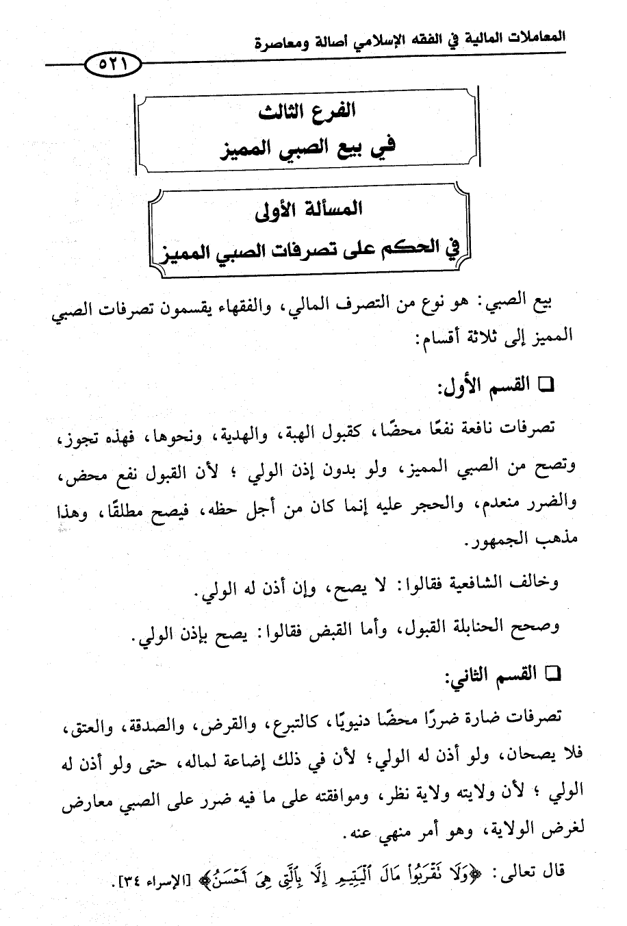 المسألة الأولى في الحكم على تصرفات الصبي المميز