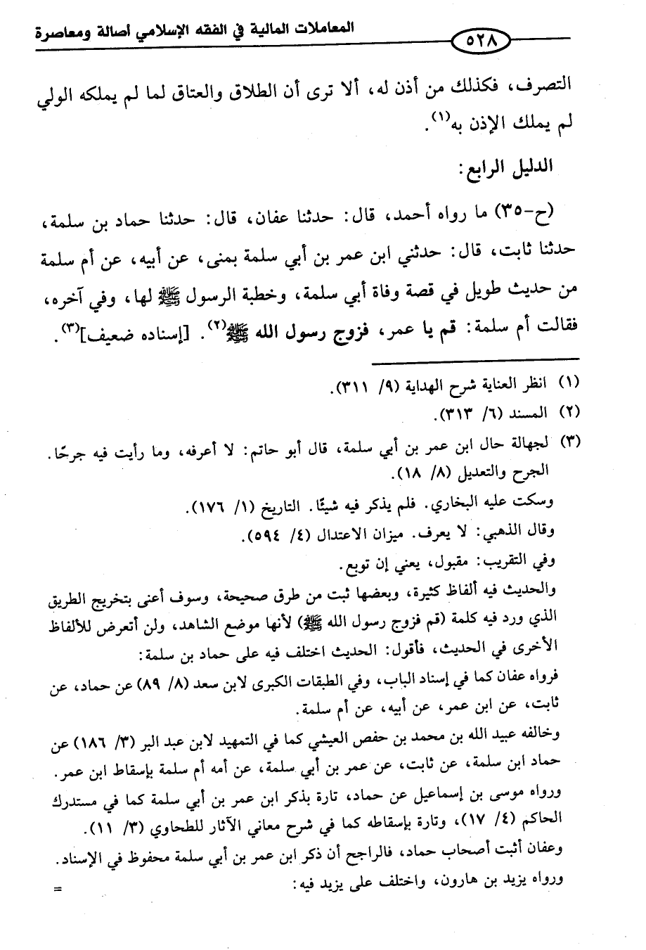 (ح-٣٥) ما رواه أحمد، قال: حدثنا عفان، قال: حدثنا حماد بن سلمة، حدثنا ثابت، قال: حدثني ابن عمر بن أبي سلمة بمنى، عن أبيه، عن أم سلمة من حديث طويل في قصة وفاة أبي سلمة، وخطبة الرسول - صلى الله عليه وسلم - لها، وفي آخره، فقالت أم سلمة: قم يا عمر، فزوج رسول الله - صلى الله عليه وسلم - (¬٢). [إسناده ضعيف] (¬٣).