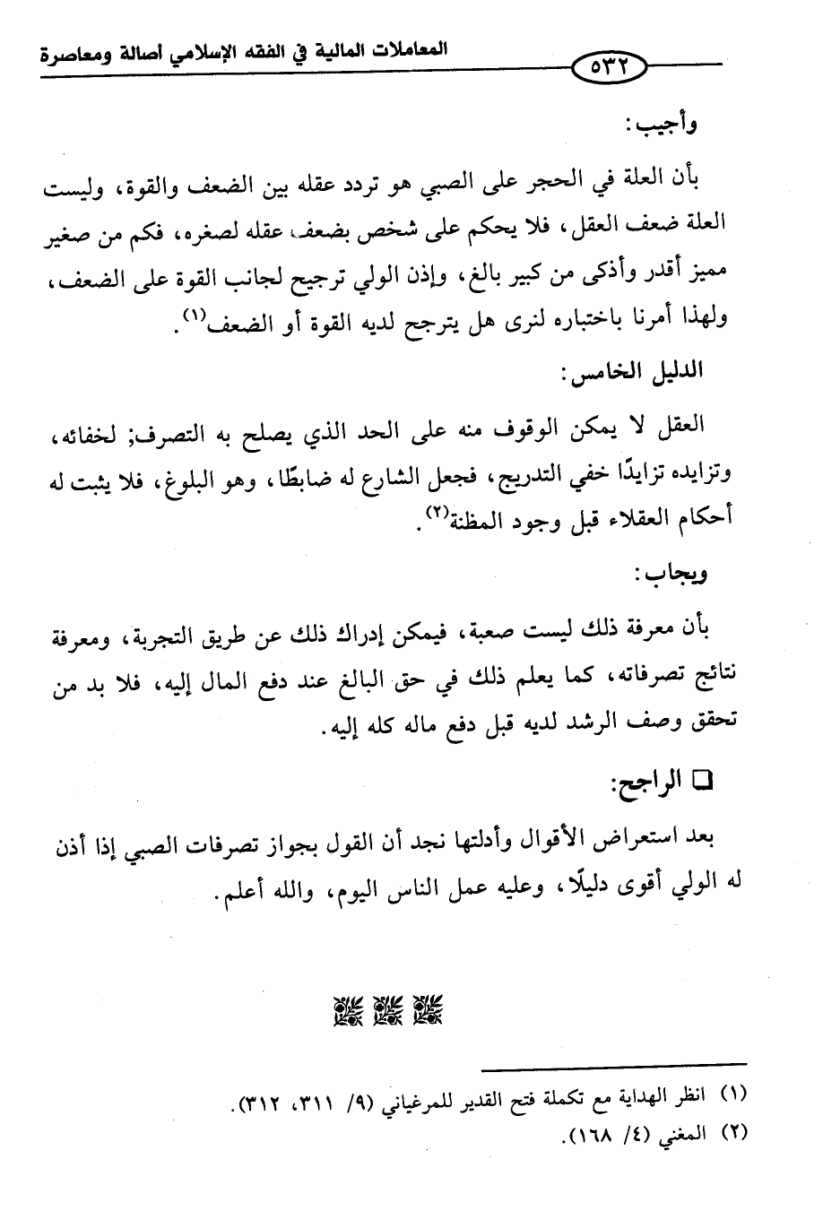 (¬١) انظر الهداية مع تكملة فتح القدير للمرغياني (٩/ ٣١١، ٣١٢).