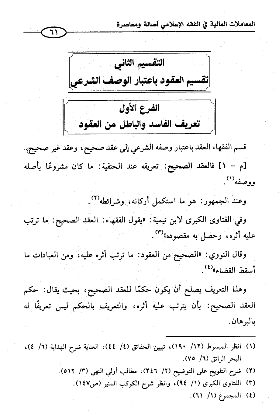 وفي الفتاوى الكبرى لابن تيمية: "يقول الفقهاء: العقد الصحيح: ما ترتب عليه أثره، وحصل به مقصوده" (¬٣).