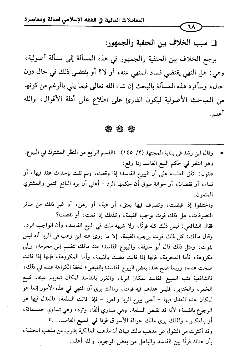 = وقال ابن رشد في بداية المجتهد (٢/ ١٤٥): "القسم الرابع من النظر المشترك في البيوع: وهو النظر في حكم البيع الفاسد إذا وقع: