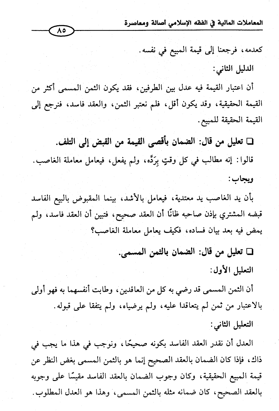 العدل أن نقدر العقد الفاسد بكونه صحيحًا، ونوجب في هذا ما يجب في ذاك، فإذا كان الضمان بالعقد الصحيح إنما هو بالثمن المسمى بغض النظر عن قيمة المبيع الحقيقية، وكان وجوب الضمان بالعقد الفاسد مقيسًا على وجوبه بالعقد الصحيح، كان ضمانه مثله بالثمن المسمى، وهذا هو العدل المطلوب.