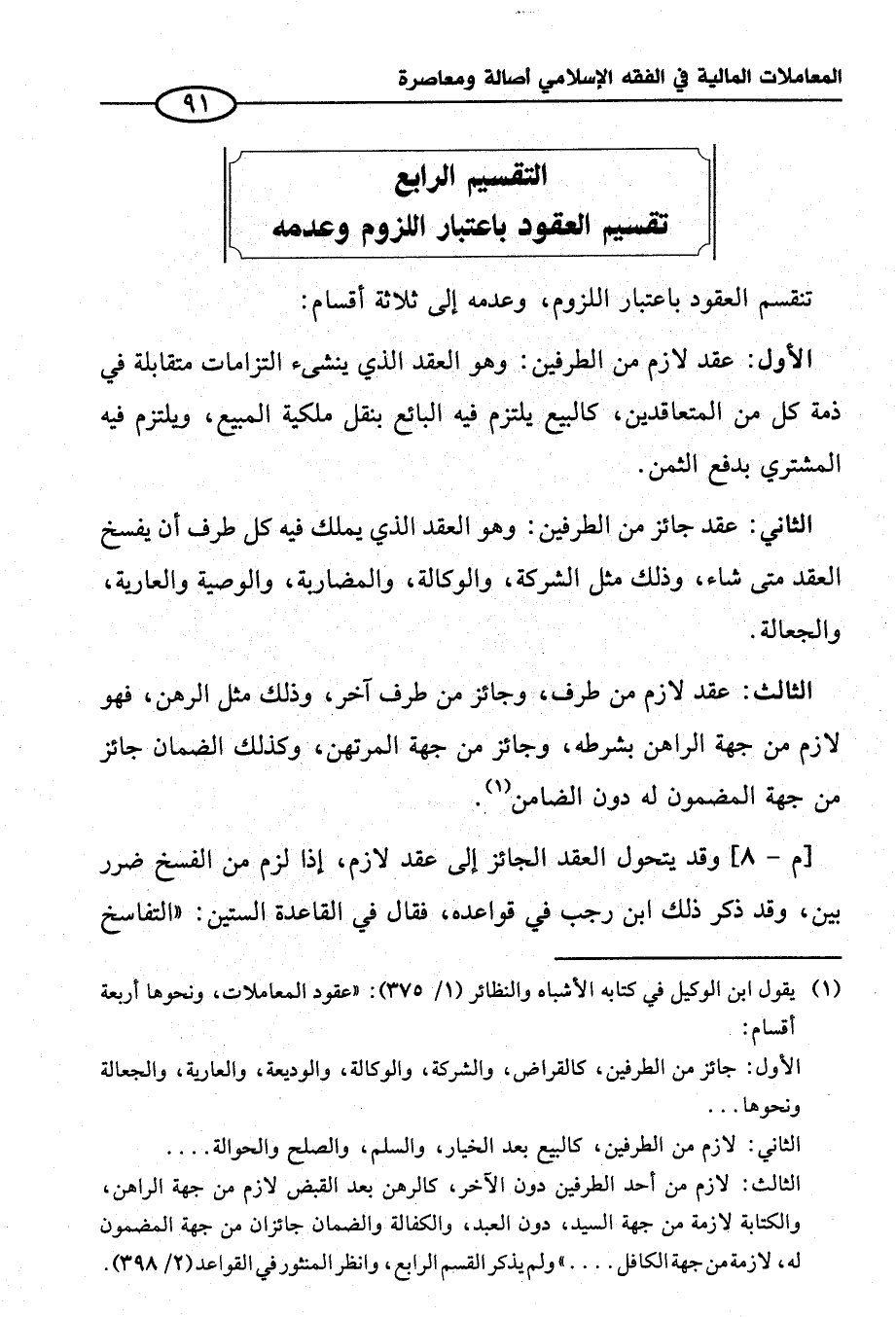 (¬١) يقول ابن الوكيل في كتابه الأشباه والنظائر (١/ ٣٧٥): "عقود المعاملات، ونحوها أربعة أقسام: