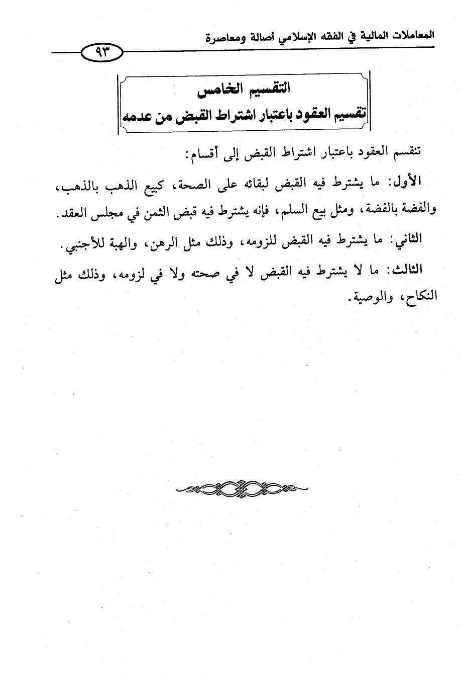 التقسيم الخامس تقسيم العقود باعتبار اشتراط القبض من عدمه