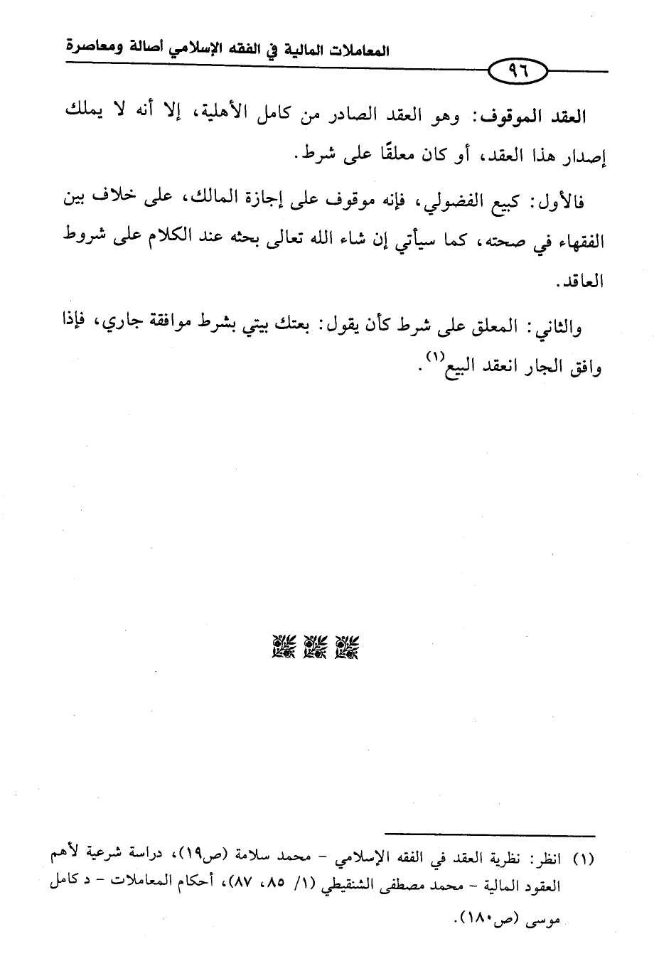 (¬١) انظر: نظرية العقد في الفقه الإِسلامي - محمَّد سلامة (ص ١٩)، دراسة شرعية لأهم العقود المالية - محمَّد مصطفى الشنقيطي (١/ ٨٥، ٨٧)، أحكام المعاملات - د. كامل موسى (ص ١٨٠).