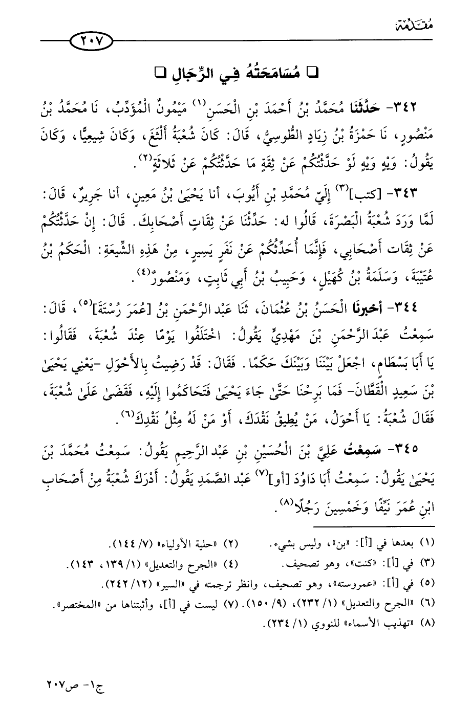 345 - سمعتُ علي بن الحسين بن عَبد الرحيم يقول: سَمعتُ مُحمد بن يَحيى يقول: سَمعتُ أبا داود، أو عَبد الصمد، يقول: أدرك شُعبَة من أصحاب ابن عُمر نيفا وخمسين رجلاً.