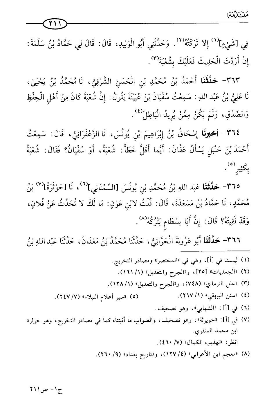 363 - حَدثنا أحمد بن مُحمد بن الحسن الشرقي، حَدثنا مُحمد بن يَحيى، حَدثنا علي بن عَبد الله: سمعتُ سفيان بن عُيَينة يقول: إن شُعبَة كان من أهل الحفظ والصدق، ولم يكن ممن يريد الباطل.