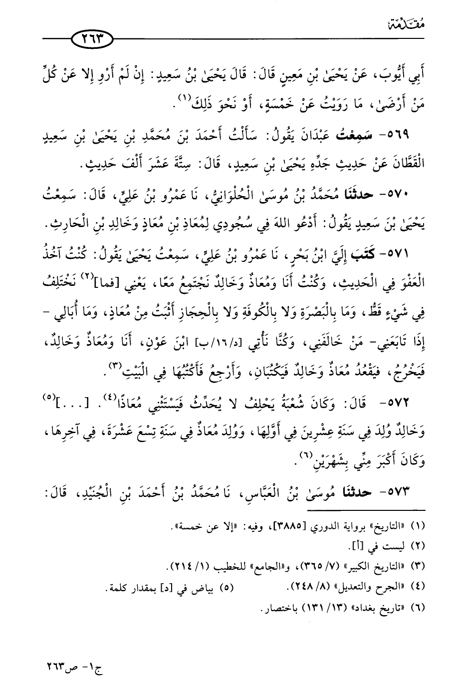 572 - قال: وكان شُعبَة يحلف لا يُحَدِّثُ فيستثني معاذًا، وخالدًا، وخالدٌ (1) ولد في سنة عشرين في أولها، وولد معاذ في سنة تسع عشرة في آخرها، وكان أكبر مني بشهرين.