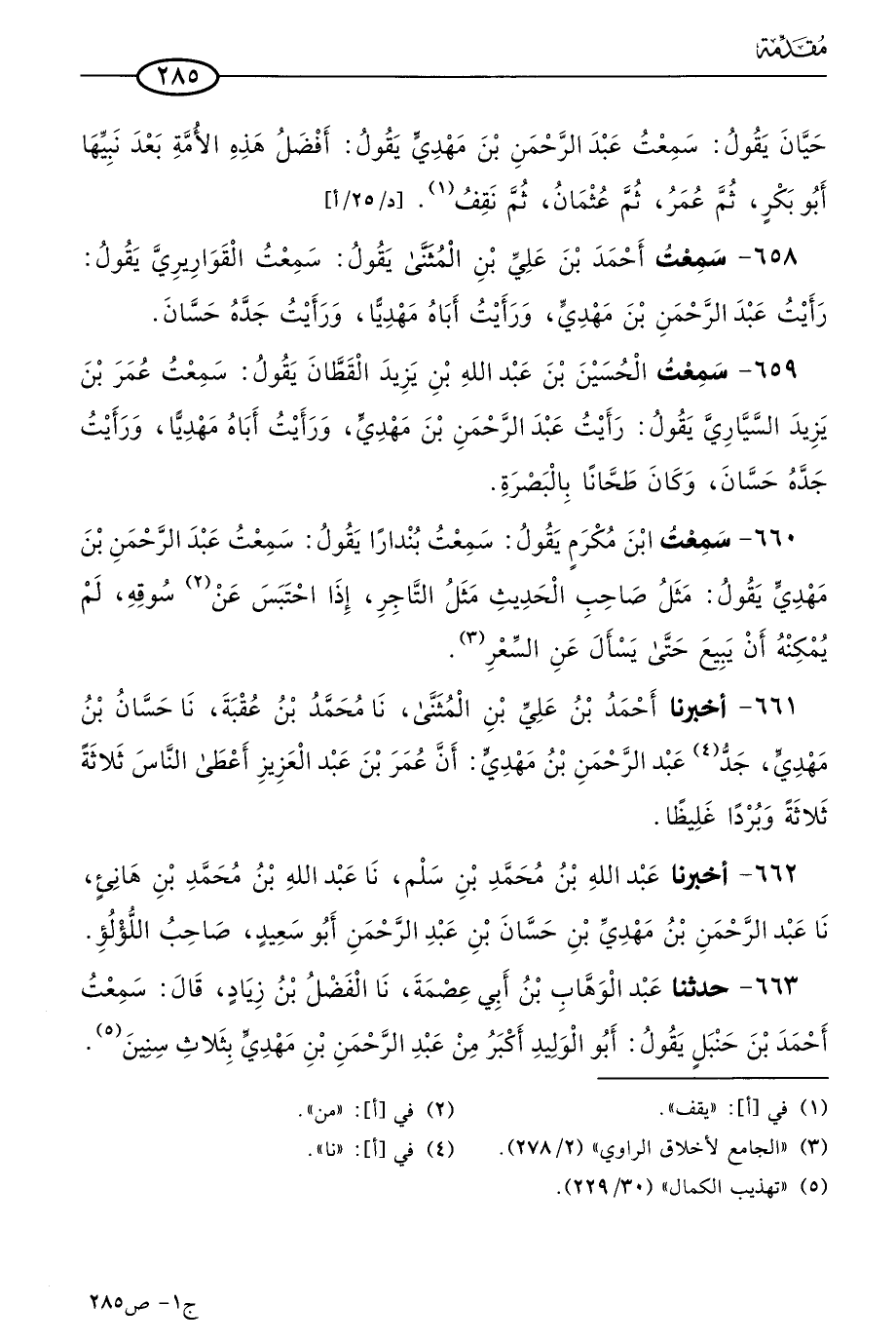 658 - سمعتُ أحمد بن علي بن المثنى يقول: سمعت القواريري يقول: رأيت عَبد الرحمن بن مهدي، ورأيتُ أباه مهديا، ورأيت جده حسان.