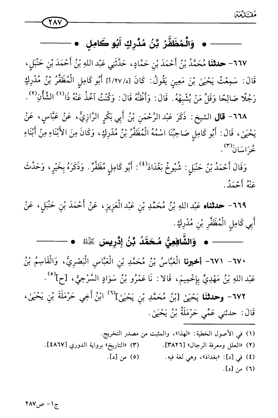 667 - حَدثنا مُحمد بن أحمد بن حماد، حَدَّثني عَبد الله بن أحمد بن حنبل، قال: سمعتُ يَحيى بن مَعين يقول: كان أَبو كامل المظفر بن مدرك رجلاً صالحا وقل من يشبهه قال: وأظنه قال: وكنت آخذ عنه ذا الشأن.