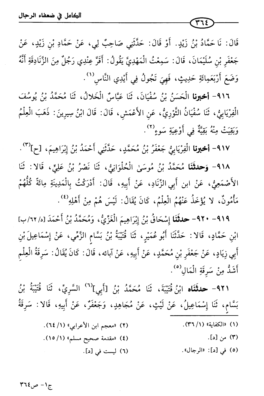 918 - وحدثنا مُحمد بن موسى الحلواني، حَدثنا نصر بن علي، قالا: حَدثنا الأصمعي، عن ابن أبي الزناد، عن أبيه، قال: أدركت بالمدينة مائة كلهم مأمون لا يؤخذ عنهم العلم، كان يقال: ليس هم من أهله.