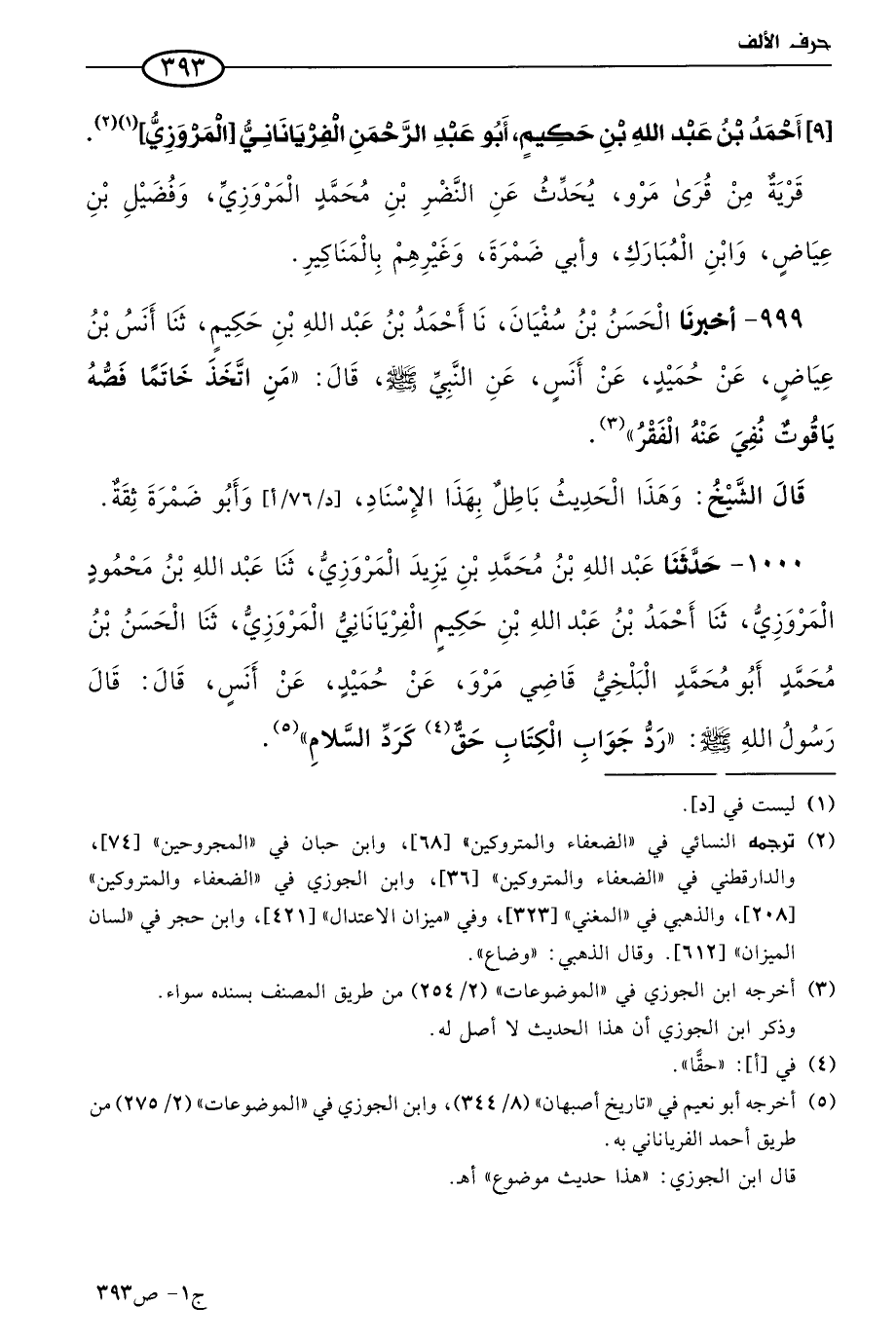 [9] أحمد بن عَبد الله بن حكيم، أبو عَبد الرحمن الفرياناني المروزي.