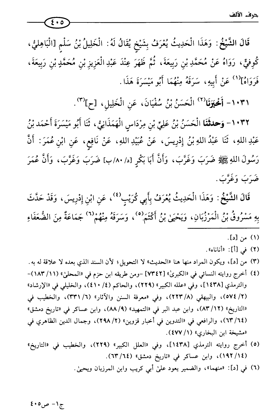 1031 - أخبرنا الحسن بن سُفيان، عن الخليل (ح).