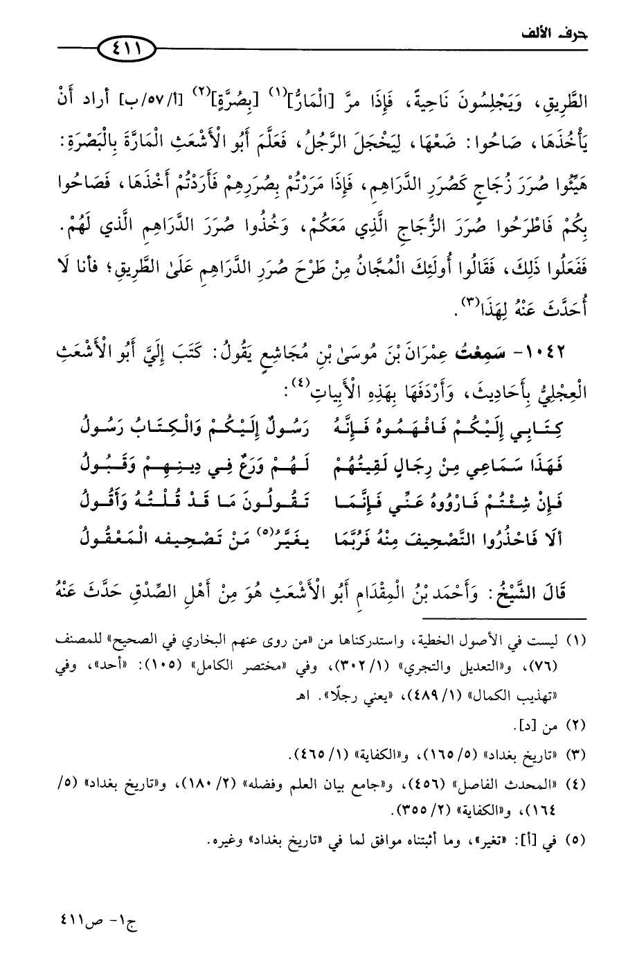 1042 - سمعت عمران بن موسى بن مجاشع يقول: كتب إلي أَبو الأشعث العجلي بأحاديث وأردفها بهذه الأبيات: