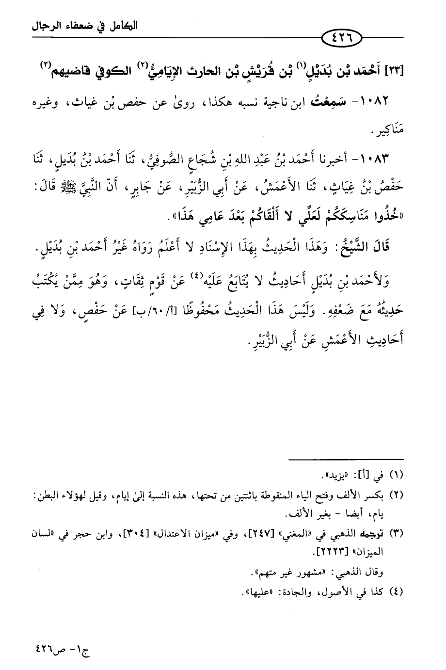 كتاب الكامل في ضعفاء الرجال لابن عدي - الرشد (اسم الجزء: 1)