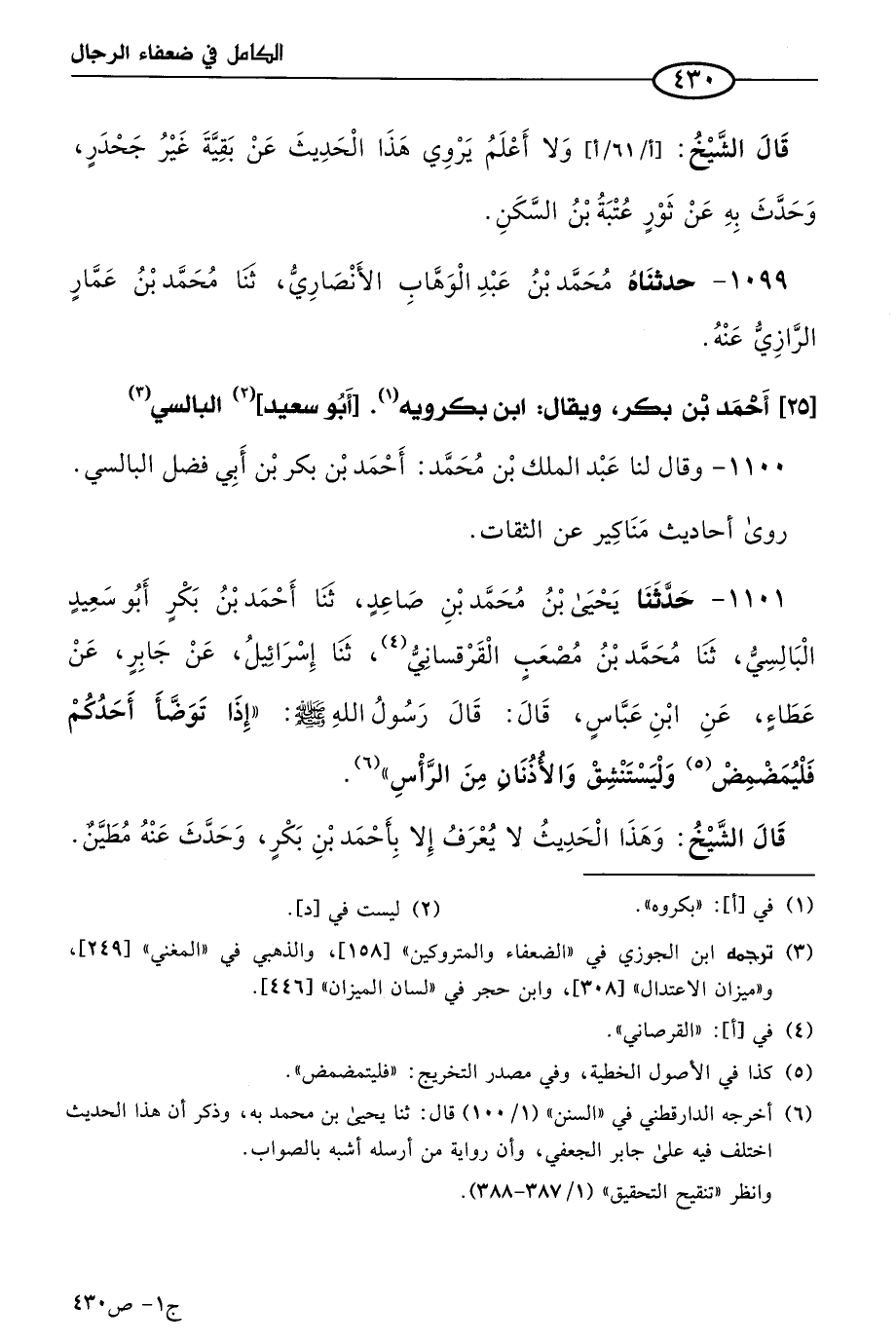 كتاب الكامل في ضعفاء الرجال لابن عدي - الرشد (اسم الجزء: 1)