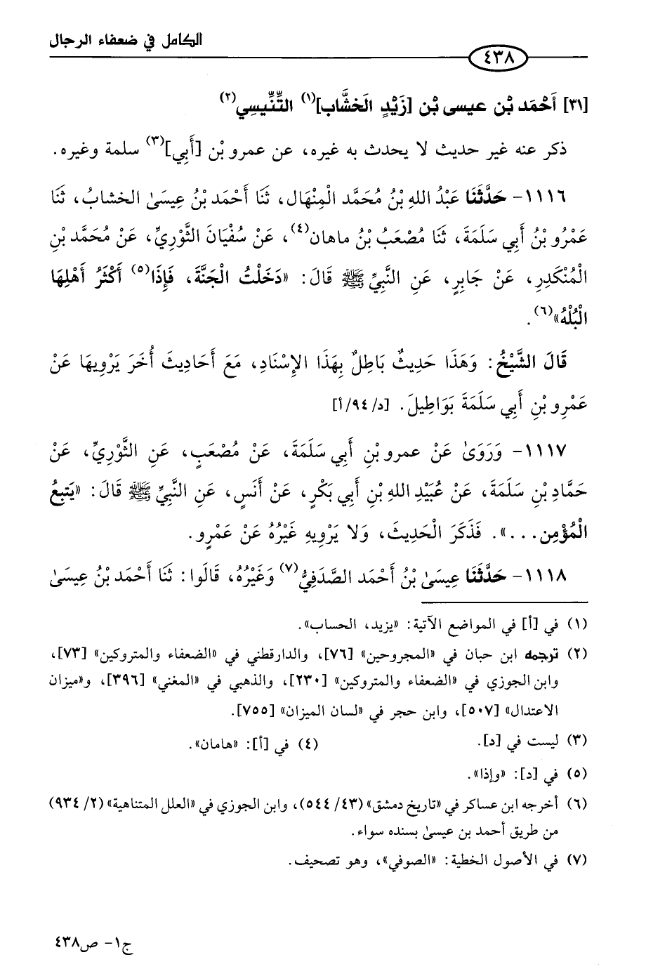 كتاب الكامل في ضعفاء الرجال لابن عدي - الرشد (اسم الجزء: 1)