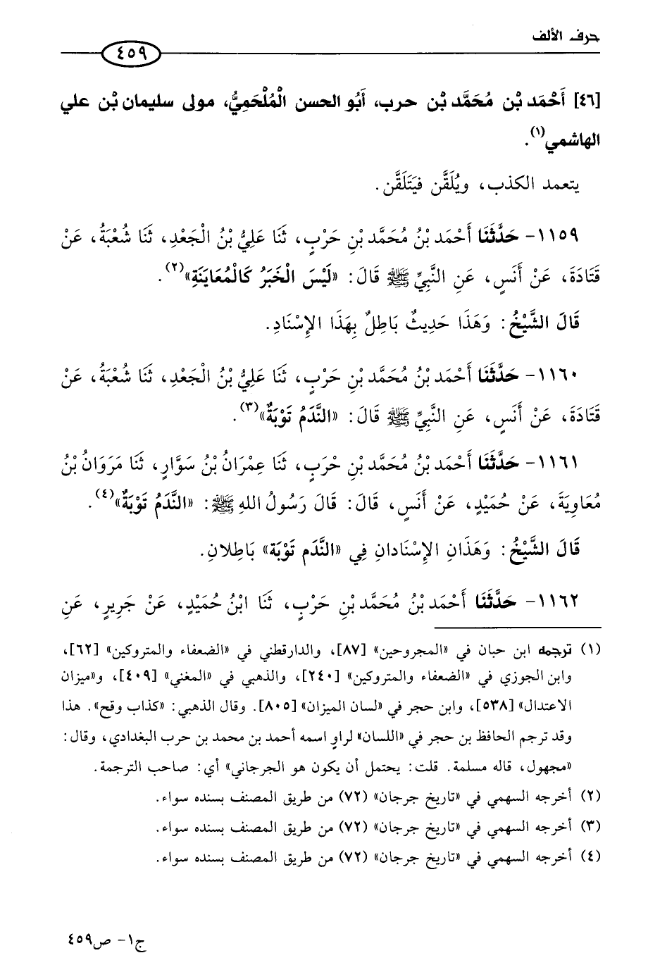 1164 - وقد بلغنا عن أحمد بن حنبل لميله إلى ابن حميد وتصلبه في السنة أنه حسَّن القول في ابن حميد لما رَوى هذين الحديثين.