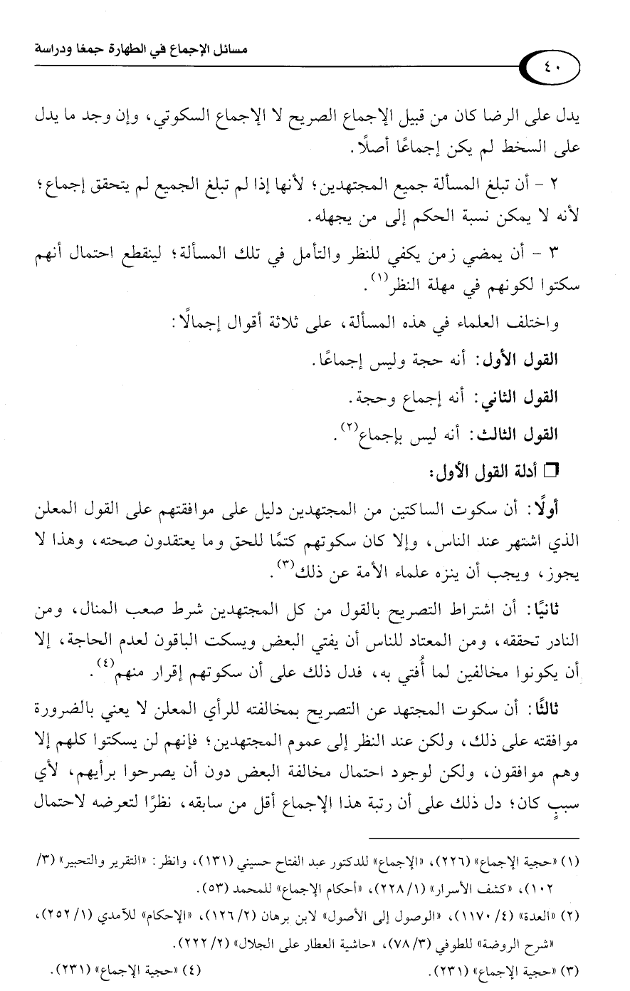 (¬1) "حجية الإجماع" (226)، "الإجماع" للدكتور عبد الفتاح حسيني (131)، وانظر: "التقرير والتحبير" (3/ 102)، "كشف الأسرار" (1/ 228)، "أحكام الإجماع" للمحمد (53).