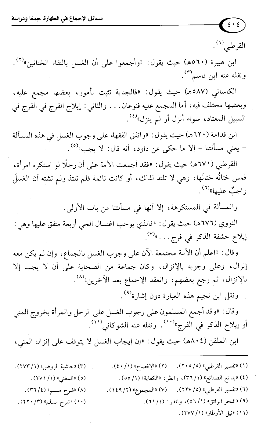 ابن هبيرة (560 هـ) حيث يقول: "وأجمعوا على أن الغسل بالتقاء الختانين" (¬2). ونقله عنه ابن قاسم (¬3).