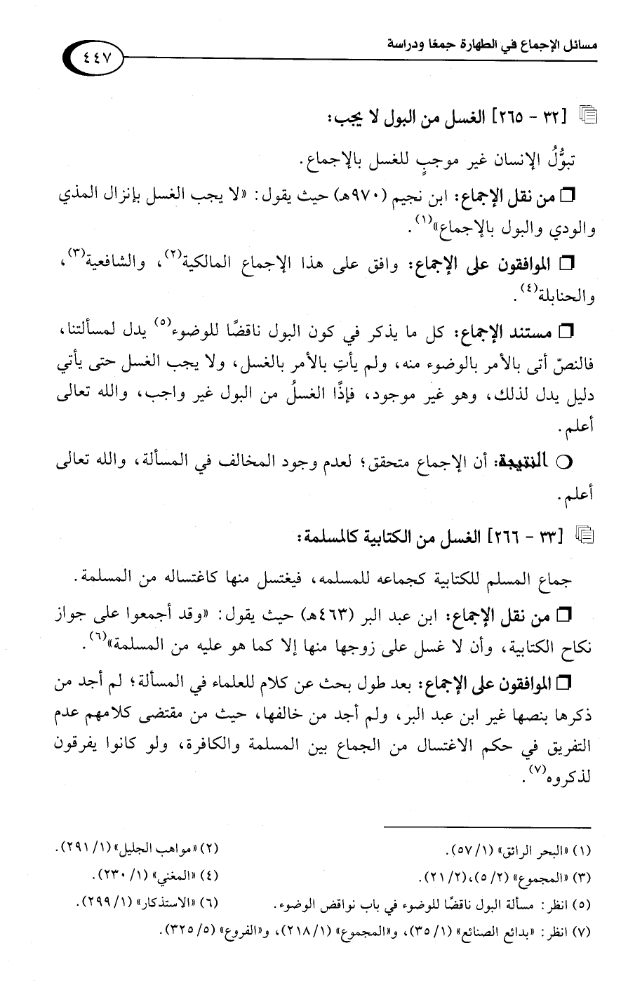 • الموافقون على الإجماع: بعد طول بحث عن كلام للعلماء في المسألة؛ لم أجد من ذكرها بنصها غير ابن عبد البر، ولم أجد من خالفها، حيث من مقتضى كلامهم عدم التفريق في حكم الاغتسال من الجماع بين المسلمة والكافرة، ولو كانوا يفرقون لذكروه (¬7).