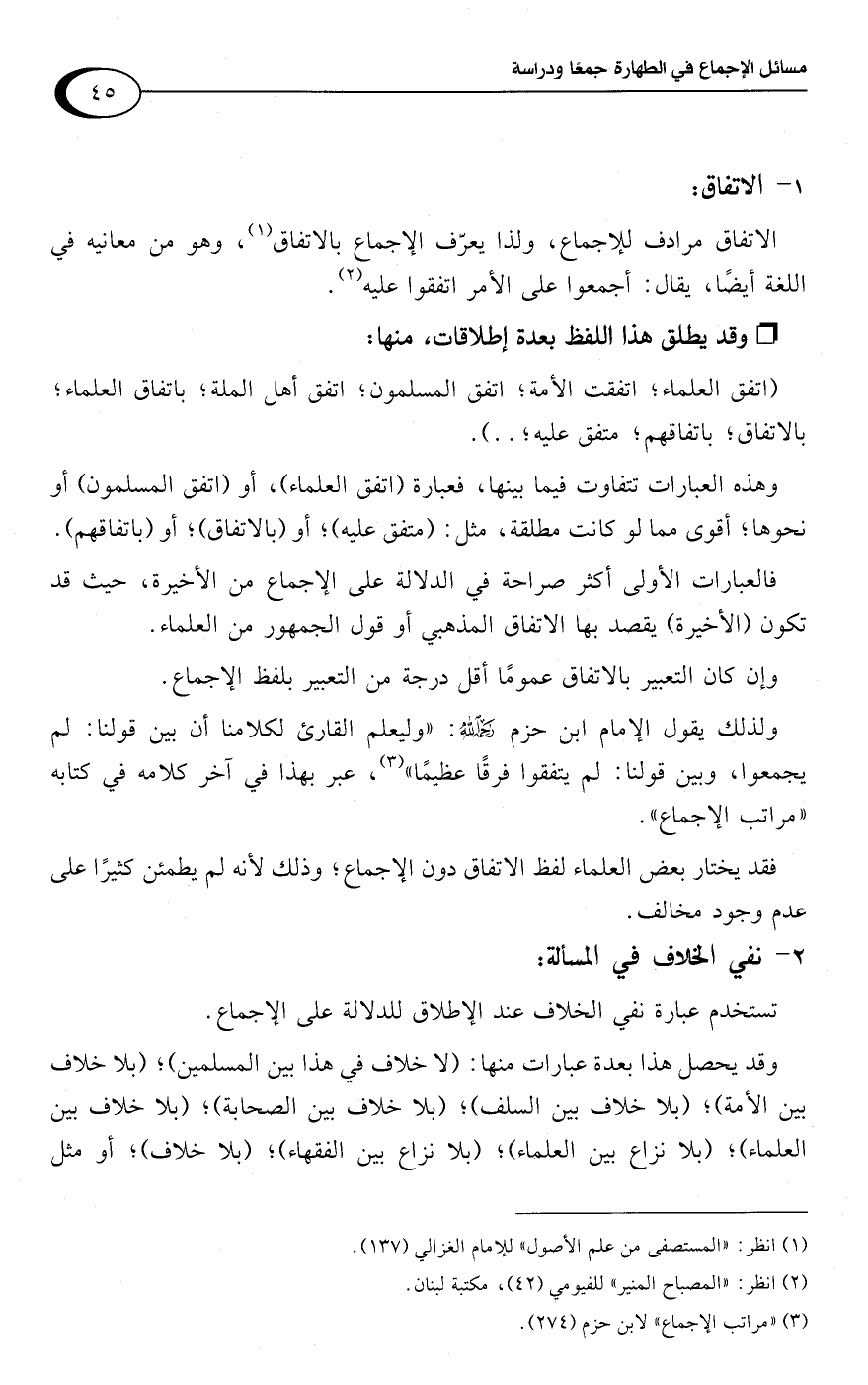 (¬3) "مراتب الإجماع" لابن حزم (274).
