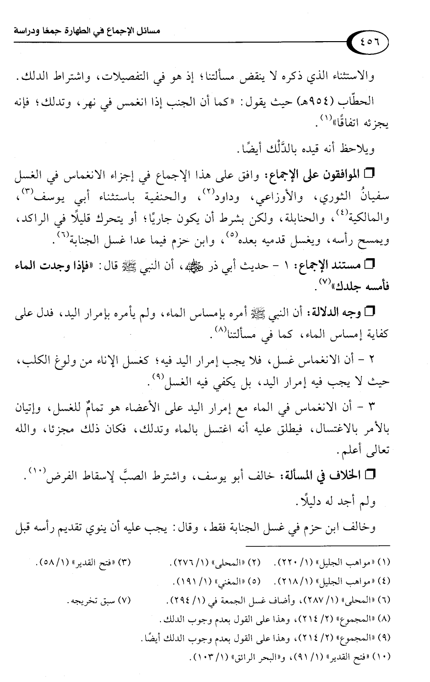الحطّاب (954 هـ) حيث يقول: "كما أن الجنب إذا انغمس في نهر، وتدلك؛ فإنه يجزئه اتفاقًا" (¬1).
